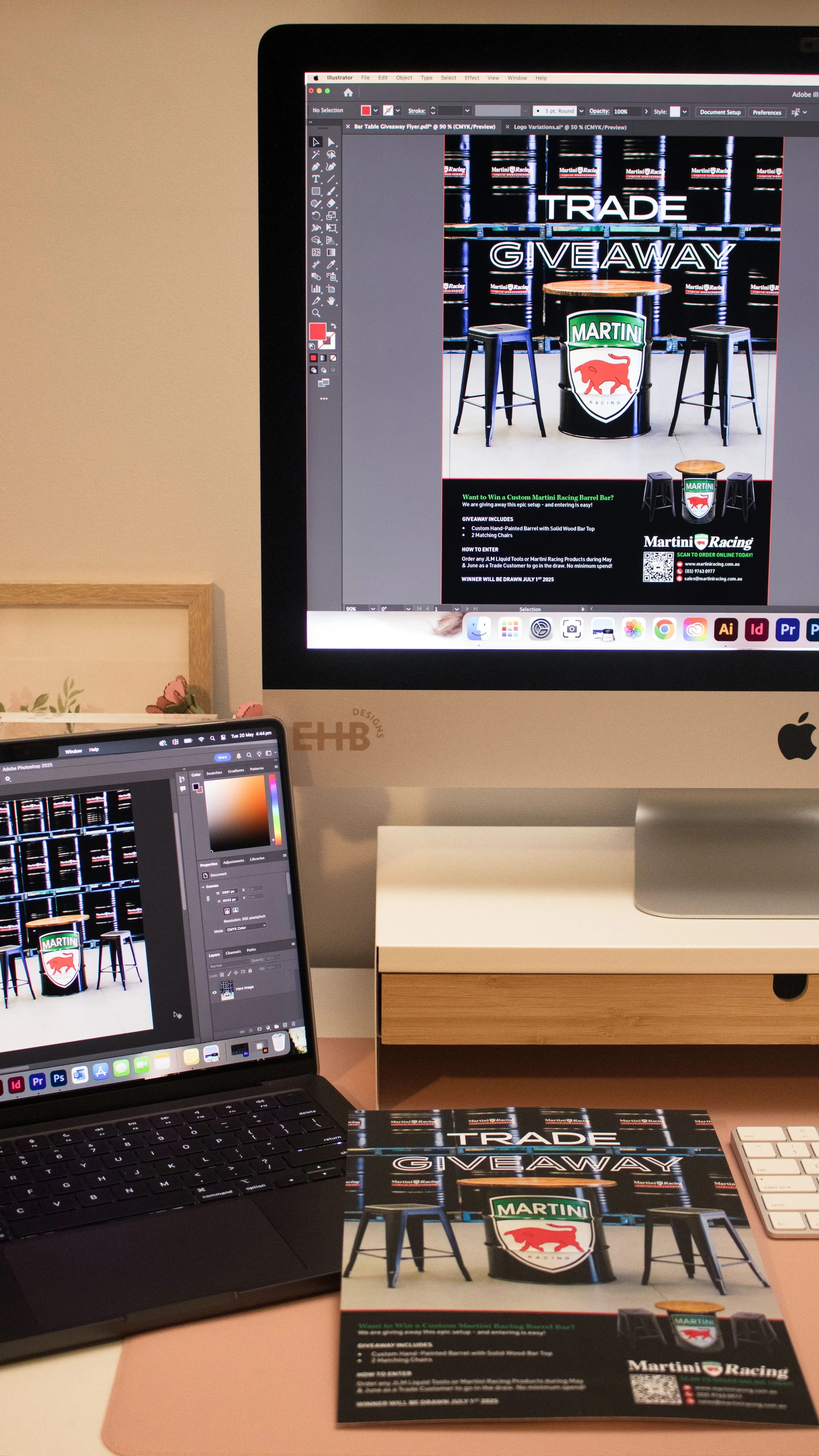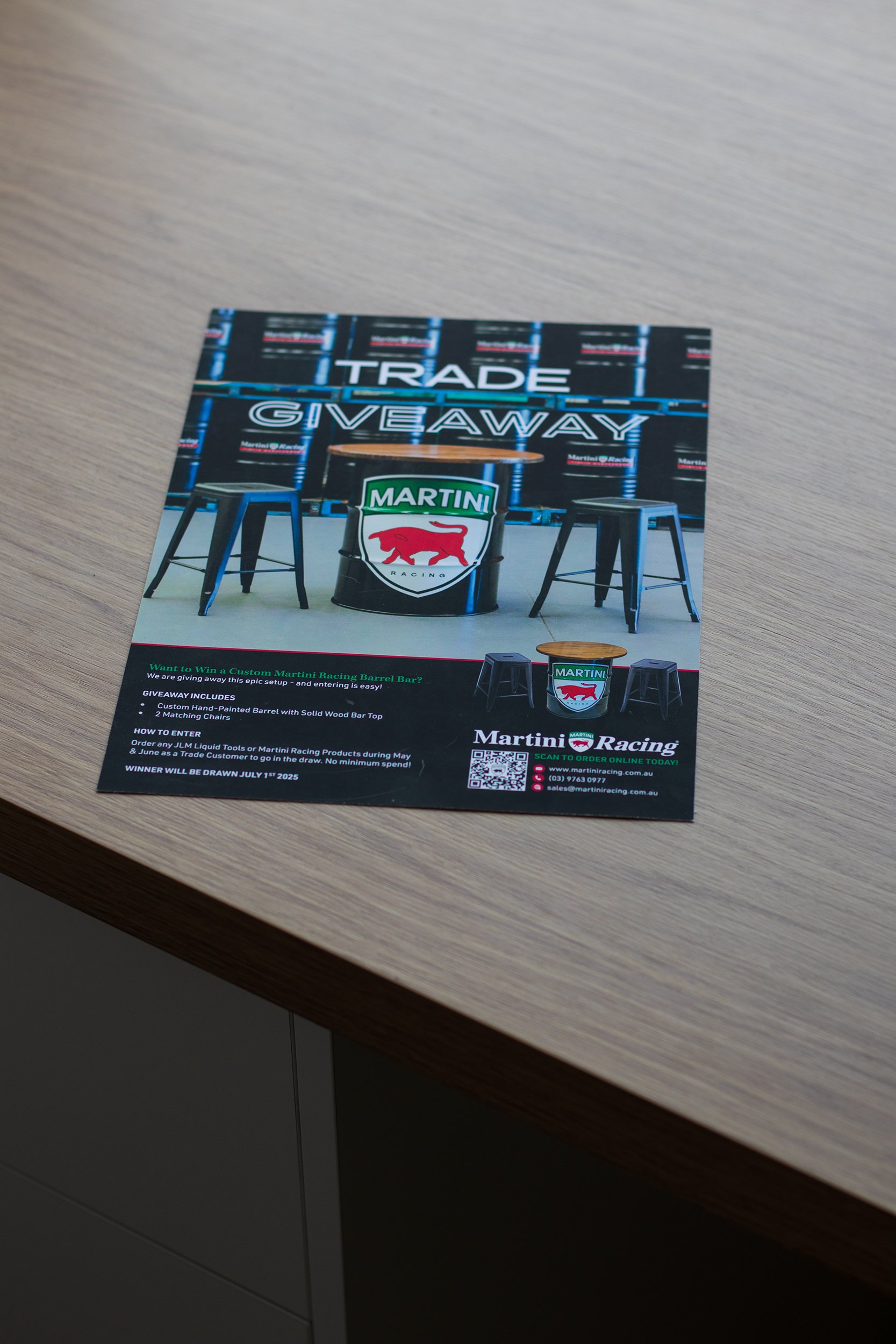 I designed promotional flyers showcasing new product launches and limited-time trade giveaways. Created layouts that highlight key features, drive workshop engagement, and maintain consistency with the Martini Racing brand.